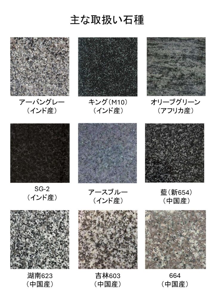 もちろんここに載せてない石種も数多く取り扱っております。